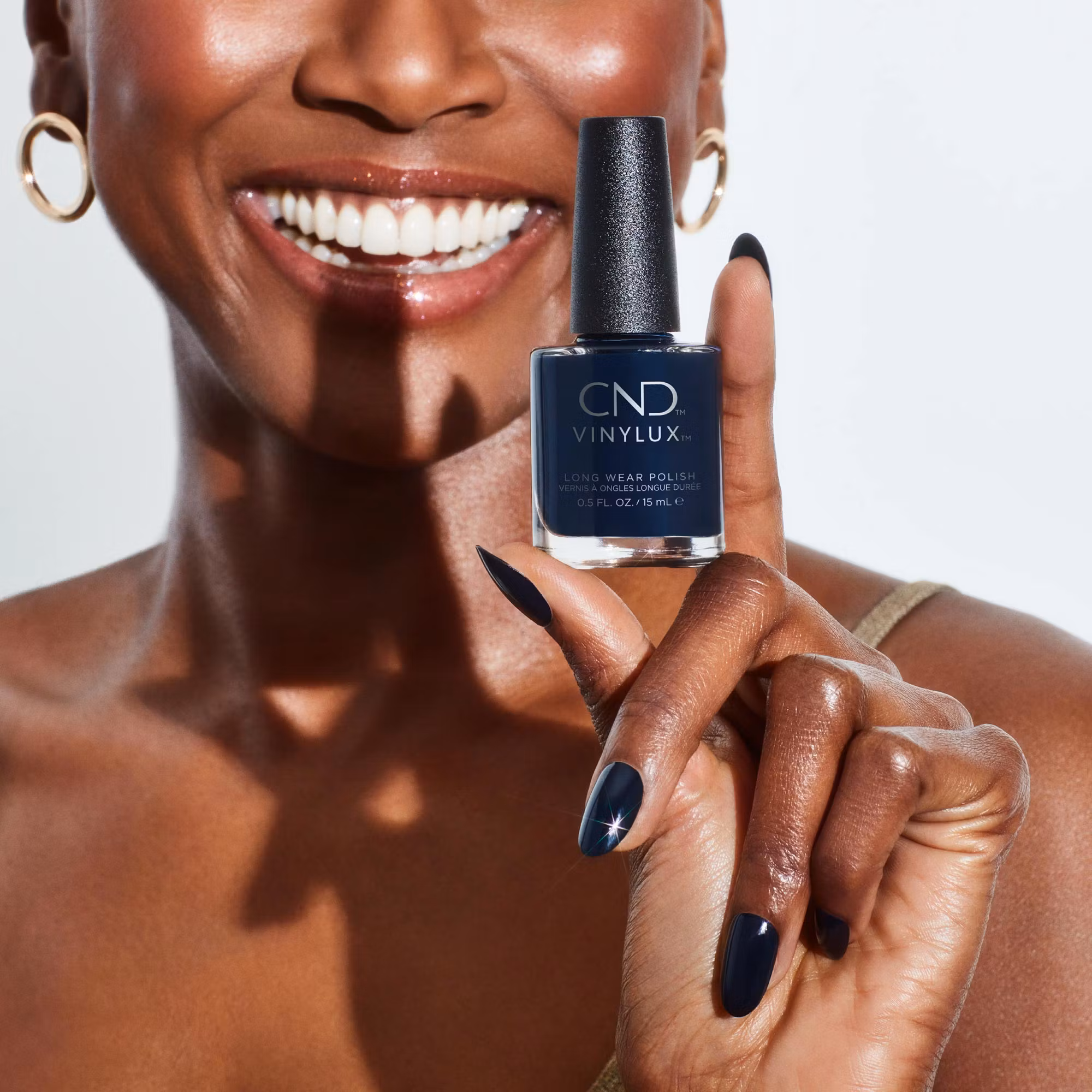 CND VINYLUX Long Wear Polish er en prisvinnende 2 – stegs neglelakkserie med ukelang holdbarhet. Ingen underlakk er nødvendig da fargene er selvheftene til negleplaten og er svært enkel å påføre med den kurvede penselen. CND VINYLUX er den første Long Wear Polish med pleiende egenskaper og inneholder; styrkende keratin, vitamin E og Jojoba olje som sikrer sunne, sterke og fleksible naturnegler.