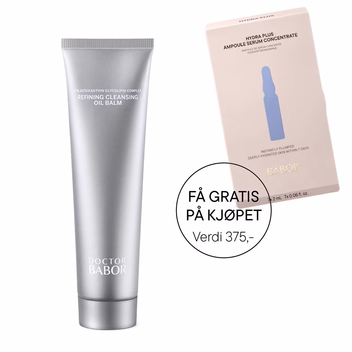 BABOR gir deg nå en eksklusiv kampanje: Kjøp Dr. BABOR Refining Cleansing Oil Balm, og få med BABOR Ampoule Hydra Plus 7 dagers kur uten ekstra kostnad.
