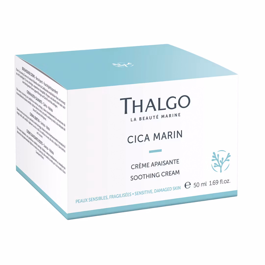 Cica Marin fra Thalgo er en spesialisert hudpleieserie designet for sensitiv og reaktiv hud. Den er drevet av marine prebiotika* avledet fra røde alger (Halymenia durvillei), og tilbyr beroligende og reparerende egenskaper. Med over 94 % naturlige ingredienser er Cica Marin-produktene miljøvennlige og egnet for sart eller skadet hud.